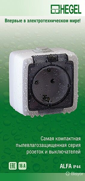 Розетки серии «ALFA IP44» для открытой установки с гарантией 5 лет и гарантированным сроком службы 15 лет степень защиты IP44, что гарантирует защиту от влаги и пыли.