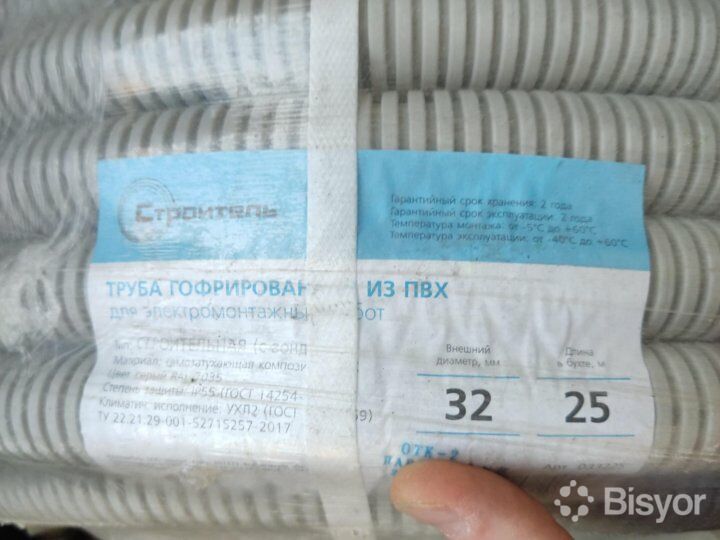Труба гофрированная ПВХ цвет-серый с/з d32мм (100м)-6500 сум 1 метр