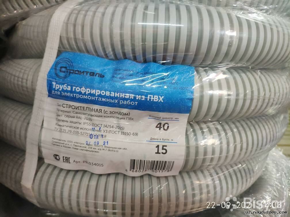 Труба гофрированная ПВХ цвет-серый, бежевый с/з d40мм (20м)-10400 сум 1 метр