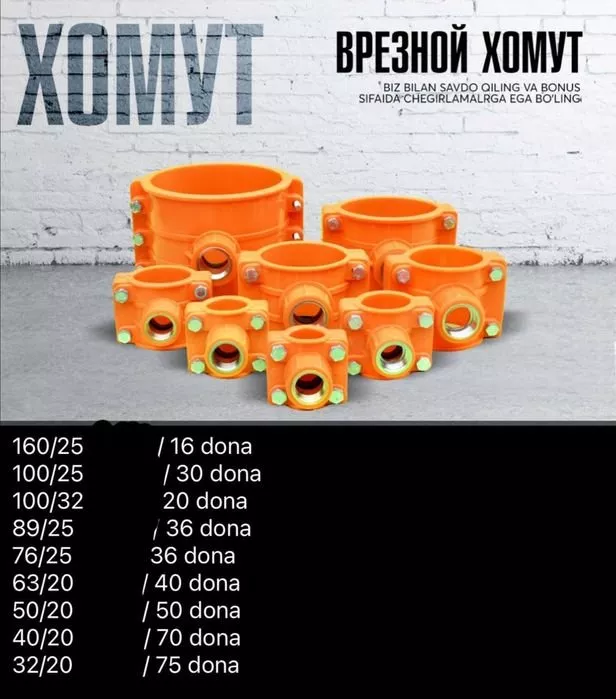 Продается врезной хомут для полиэтиленовых и гофрированных труб. Идеально подходит для установки в канализационных системах и дренажах. Доставка по Ташкенту доступна, оплата любая. Для получения дополнительной информации звоните по телефону 933855665. Не упустите возможность улучшить вашу систему!