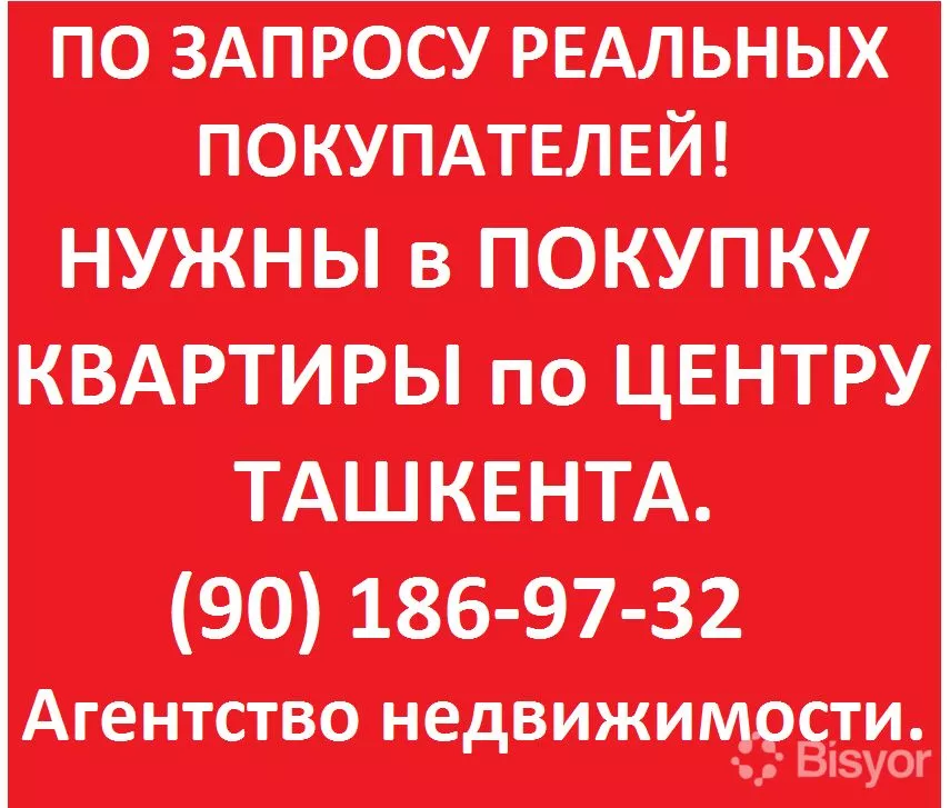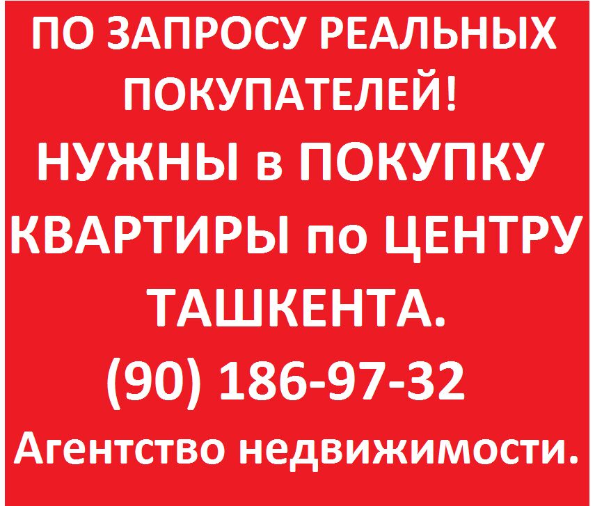 Нужны 1-2х-3х и 4х комнатные квартиры в центральных районах Ташкента.